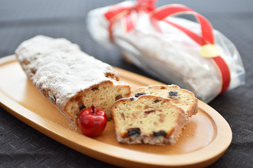 数種類のスパイスや洋酒に漬け込んだ自家製フルーツを使用し伝統的な製法で時間をかけて発酵させた生地を丁寧に焼き上げました。