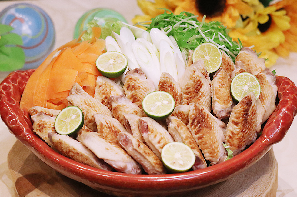 すだちのさわやかな香りがふわりと広がり、手羽先の旨味とともにすっきりとした後味夏でも美味しく楽しめる、涼やかな鍋料理です。