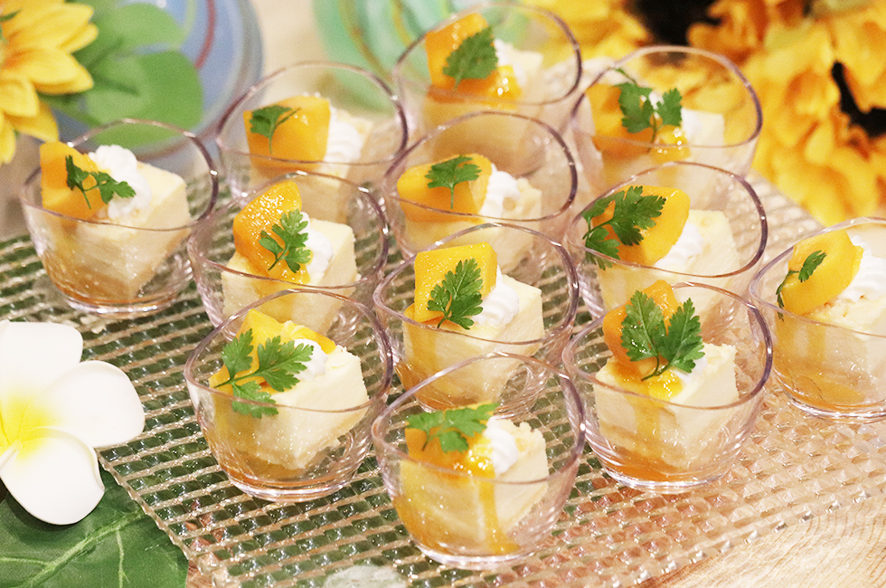みずみずしい白桃とほんのり香る杏仁が重なり合う、夏にぴったりのひんやりスイーツお祭り気分そのままに、食後まで爽やかにお楽しみいただけます。
