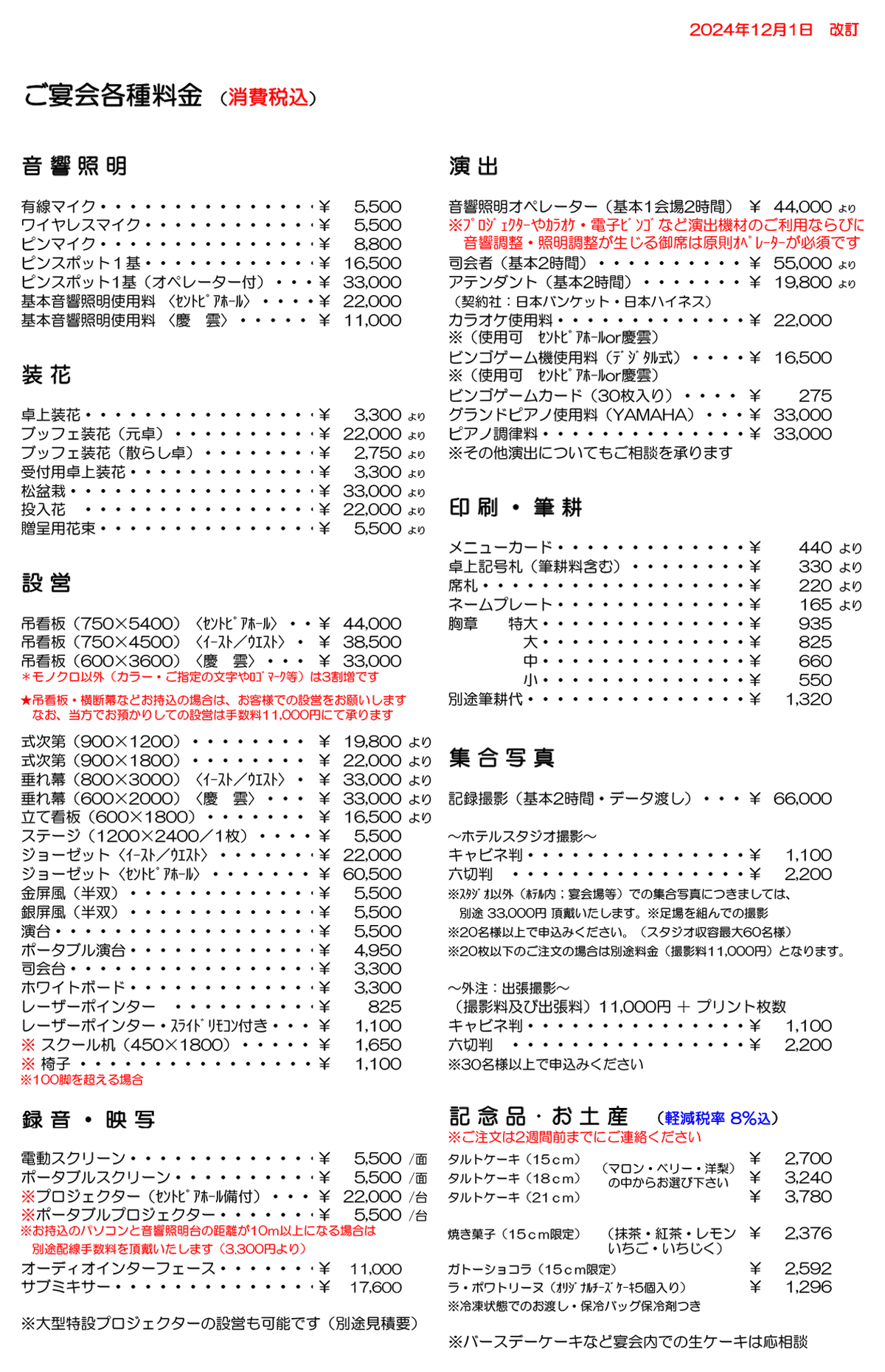 EAST HALL / WEST HALL各種ご宴会をはじめ、会議、研修、展示会など最大120名様の催事に対応した大ホールです。