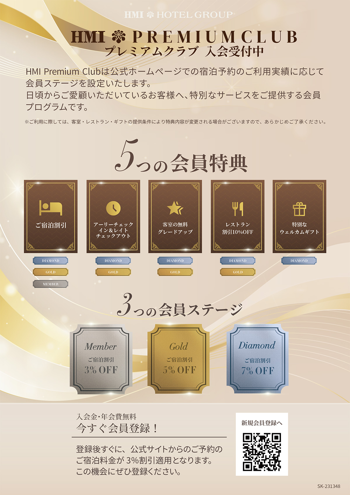プレミアムクラブ HMIホテルグループの会員サービス「HMI Premium Club」は、