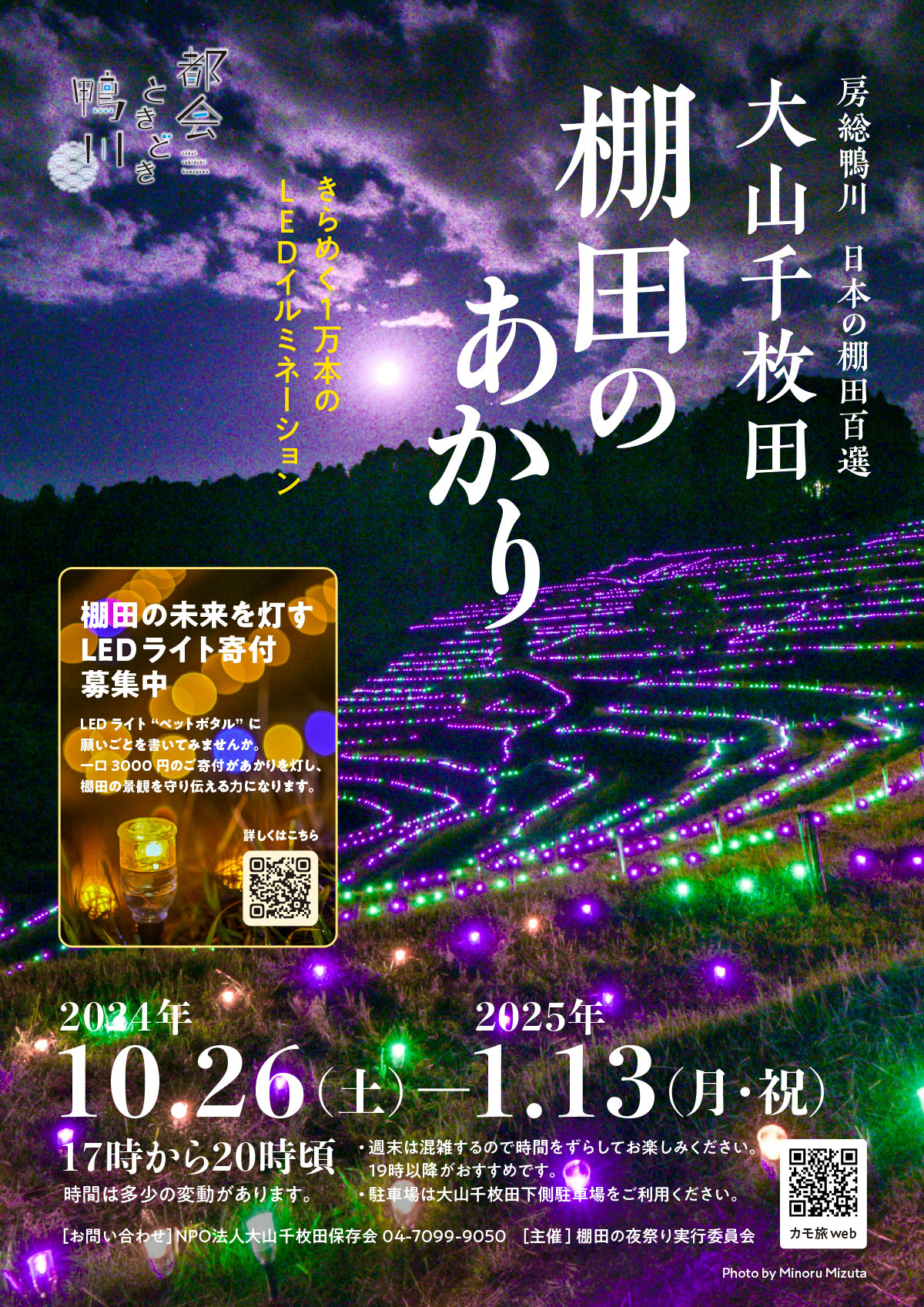 きらめく1万本のLEDイルミネーション!夜の大山千枚田が光の海に変わります。