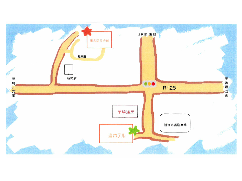 【場 所】2階玄関左手の階段を下り、直進約80m右手にございます。