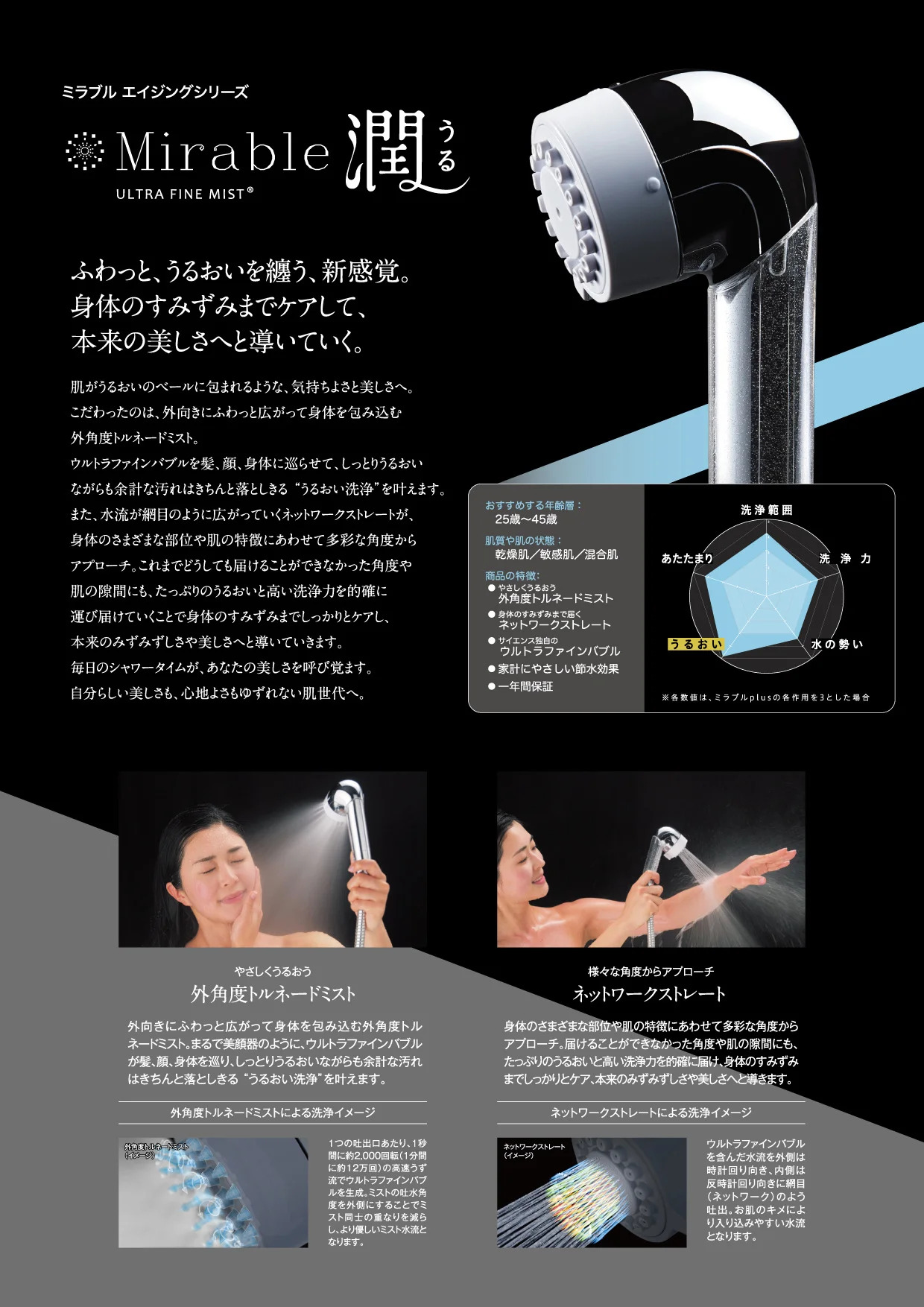 - 大浴場に人気のシャワー「ミラブル潤」を設置しました。