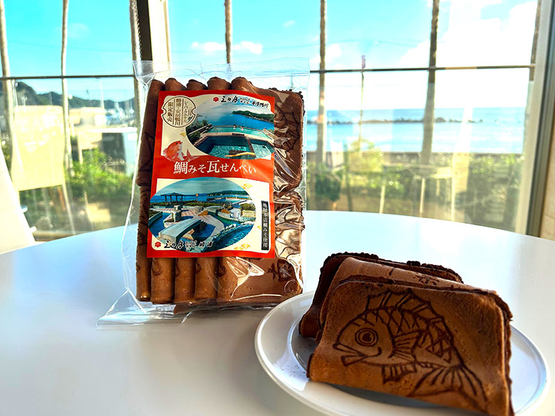 亀屋特製の鯛みそを原料に使って、香ばしく焼き上げた「瓦せんべい」です。