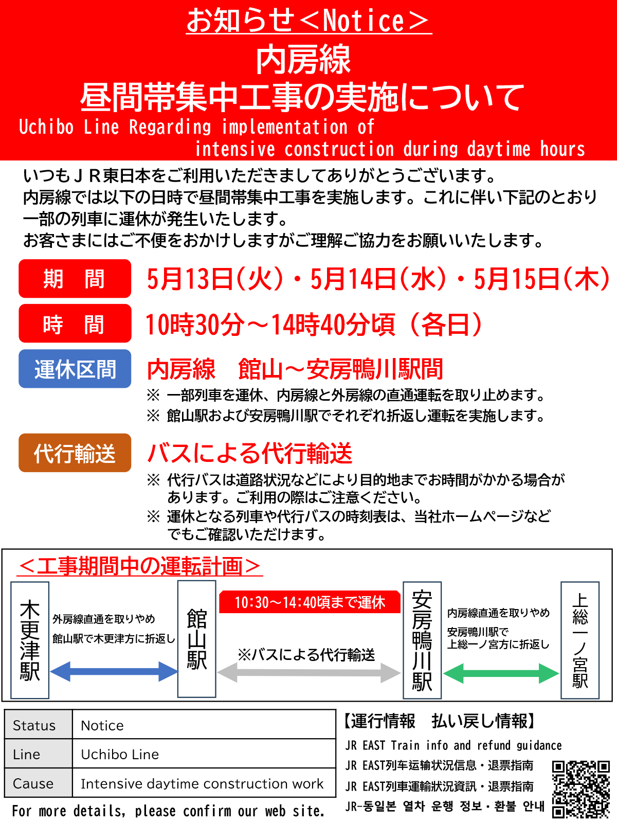 ①JR東日本 内房線 昼間帯集中工事の実施について(PDFが開きます)