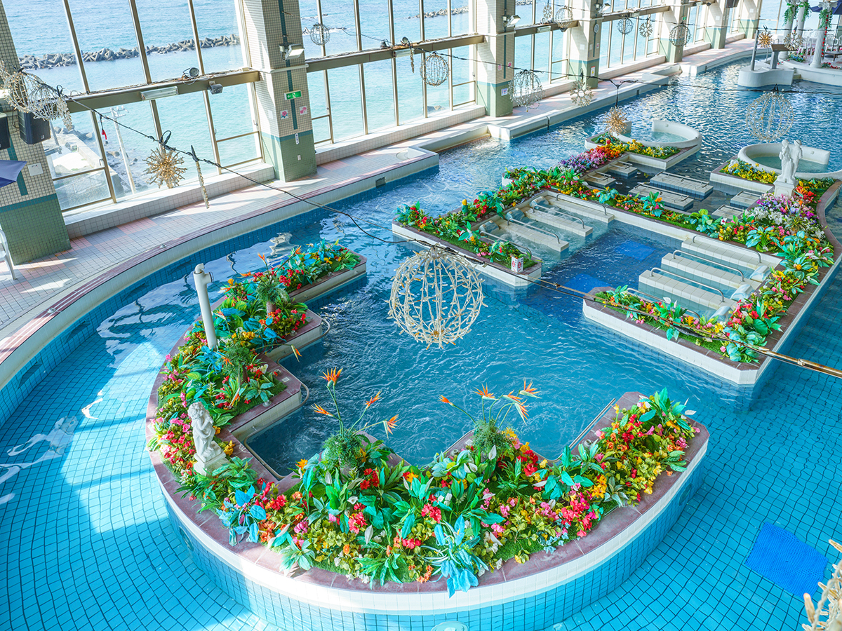 眼下に広がる太平洋。全天候型屋内スパと地上8階スパの宮殿太平洋の大パノラマ!