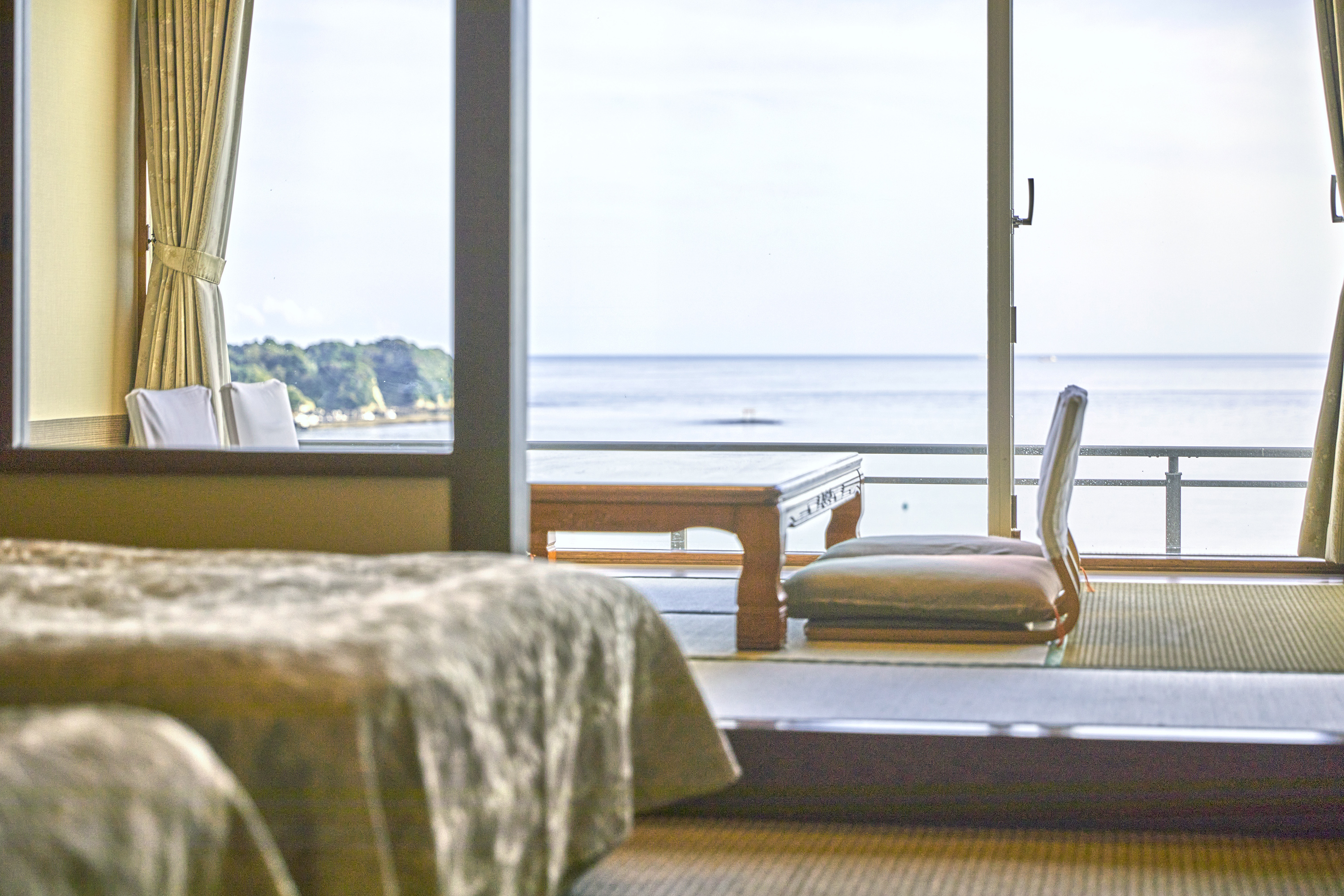 オーシャンビューの和室10畳のお部屋となります。吹き抜ける開放感と太平洋の眺望が心地よいお部屋です。
