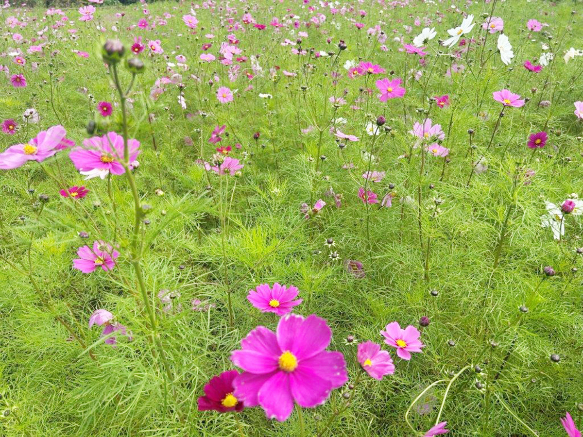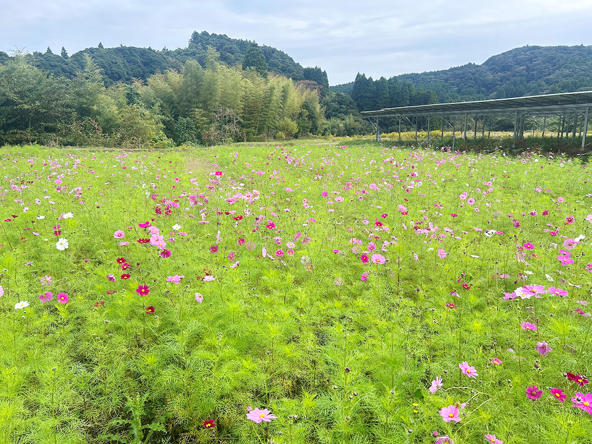 里山が一面ピンク色に染まる可憐なコスモスを見に行きませんか。コスモスフェスタ開催中は、花摘みや地元の野菜、手芸品などの販売なども行われます。