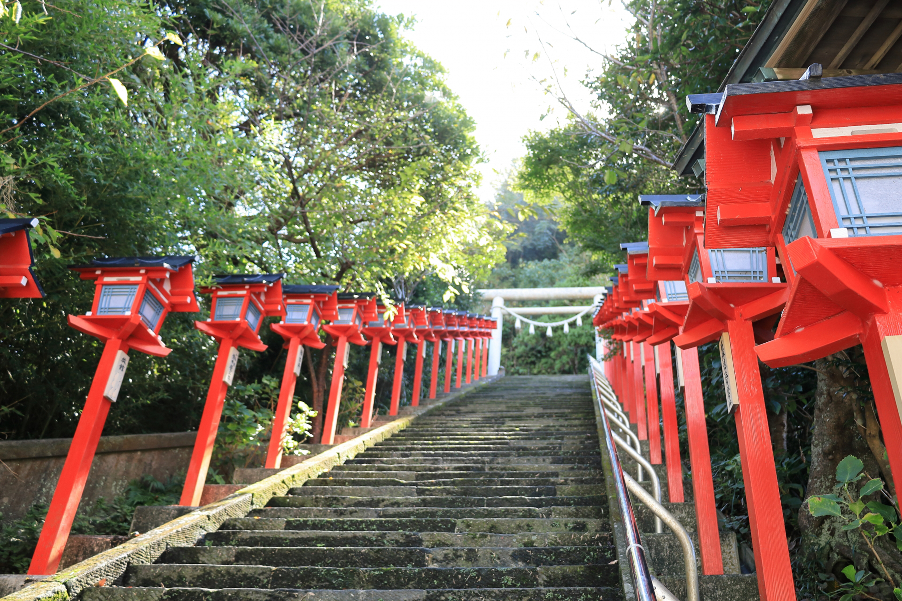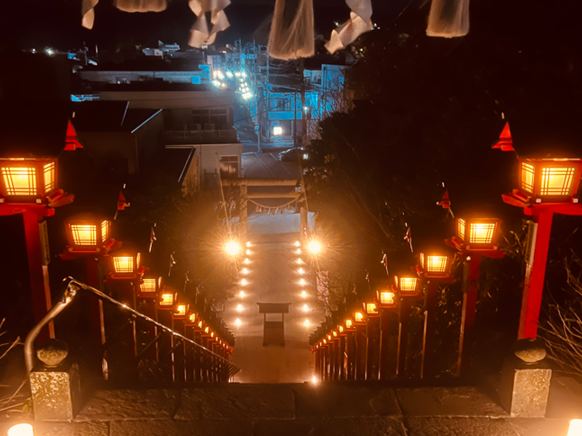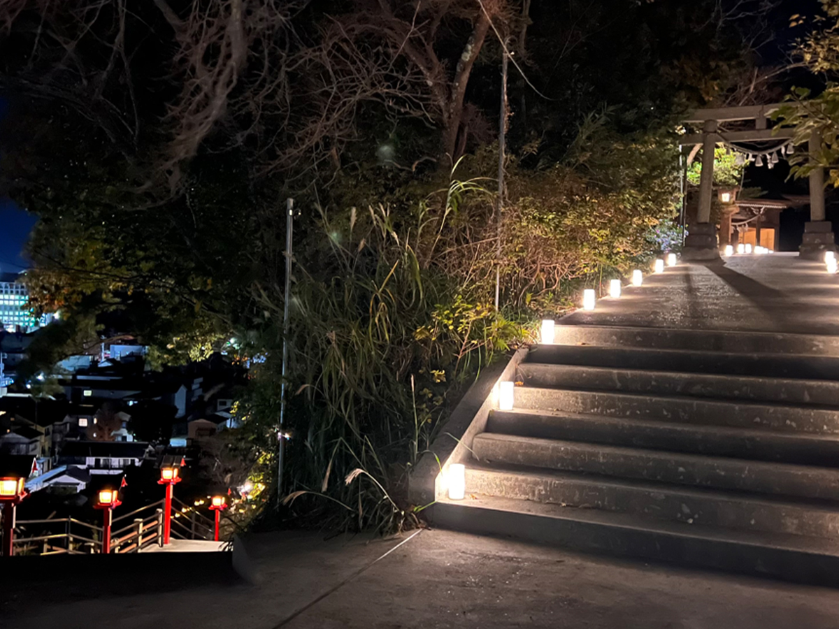 夕暮れ時から灯籠の幻想的なライトアップや眼下に広がる夜景を楽しむことができます。