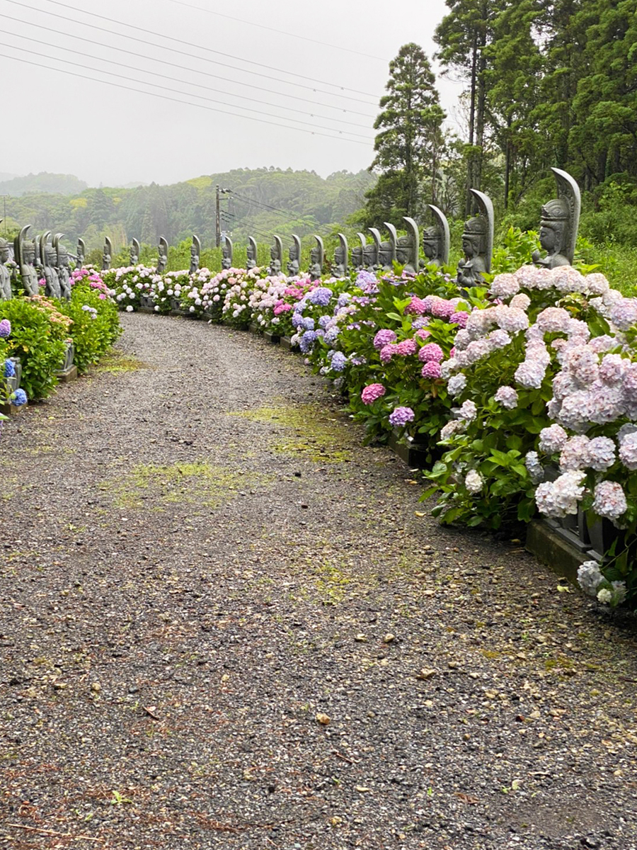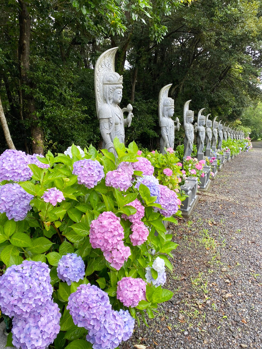 紫陽花が咲き乱れる梅雨の時期が見どころ雨の日が神秘的です。