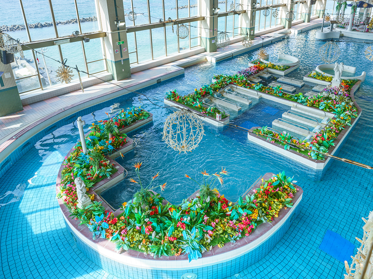 温水プールやお風呂など多彩なアクティビティをみんなで満喫しよう。