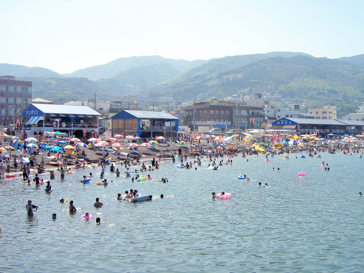 水質は最高基準のAA。伊東温泉の町の目の前にあり、水着のまま出かけ、濡れたまま戻って豊かな温泉にひたれるのがいちばんの魅力です。