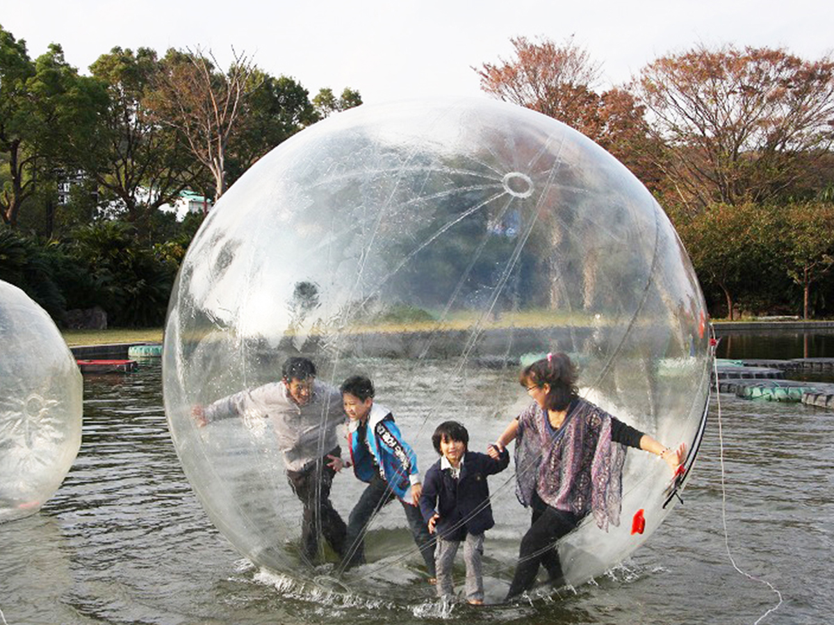 水の広場にある「ウォーターバルーン」にキッズコースターやゴーカート等楽しい乗り物がたくさん!進化し続けるテーマパークです。