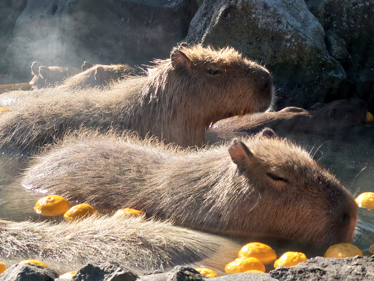 露天風呂に入るカピバラをはじめ様々な動物達がいる動物園と、巨大なサボテンの展示施設があり伊豆を代表するテーマパークです。