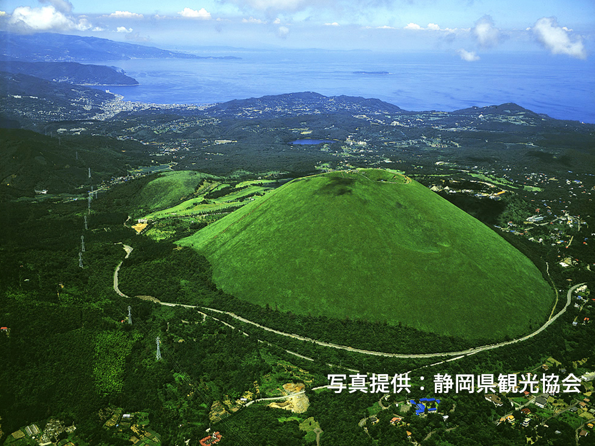 他では見られない伊東市のシンボル。リフトで登った先の山頂、火口の周りには遊歩道が整備され、ここだけの景色が楽しめます。