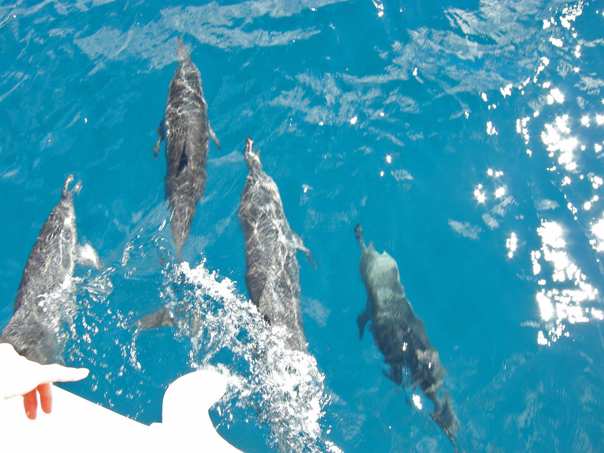 自然の入り江をそのまま利用した「ふれあいの海」はイルカ達が自由に泳ぎ回ります。イルカ達と一緒に遊んだり、泳いだりすることも。