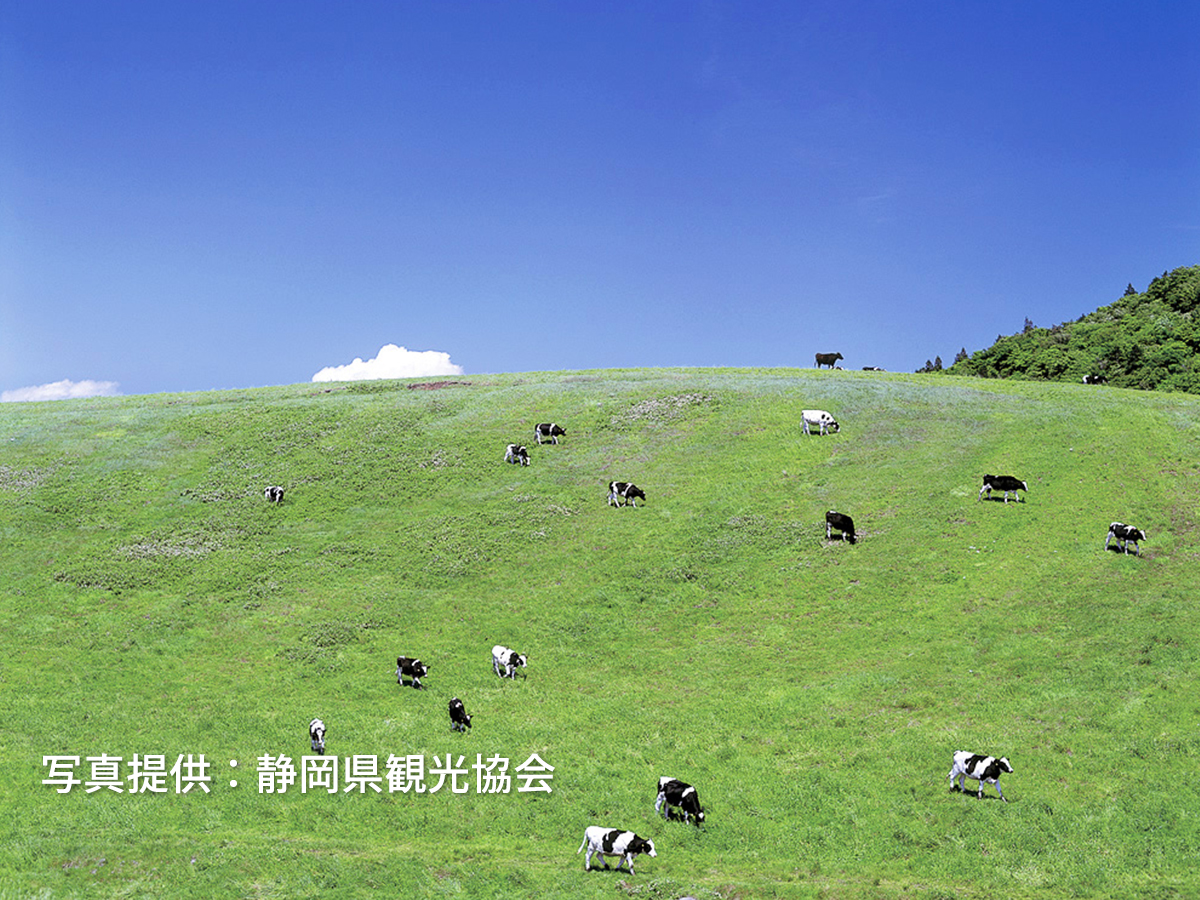 標高750メートルから駿河湾を一望できる高原で、レストランでは自慢の牛乳たっぷりな濃厚ソフトクリームや軽食も楽しめます。