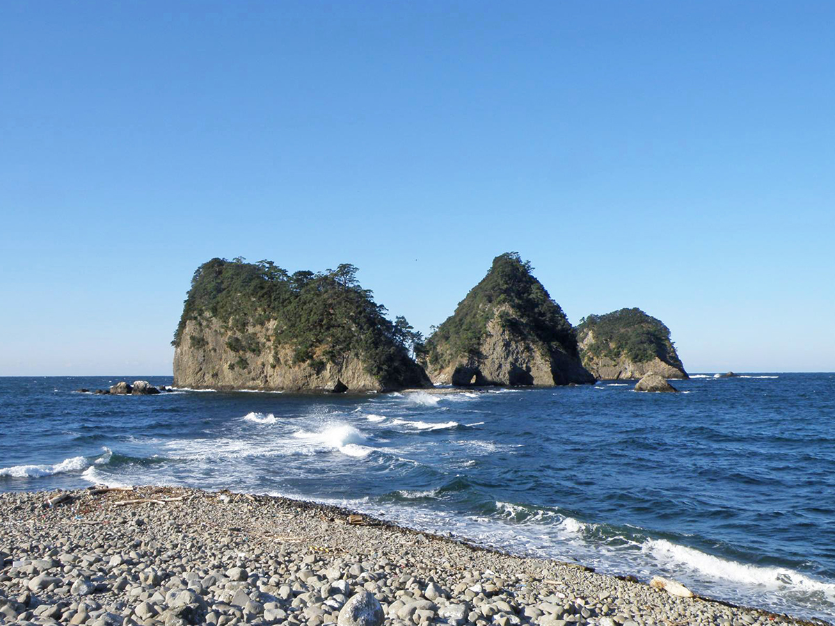 沖あい200メートル程の所にある4つの島で、干潮時には瀬が現れ歩いて渡ることができる「トンボロ現象」が起こります。