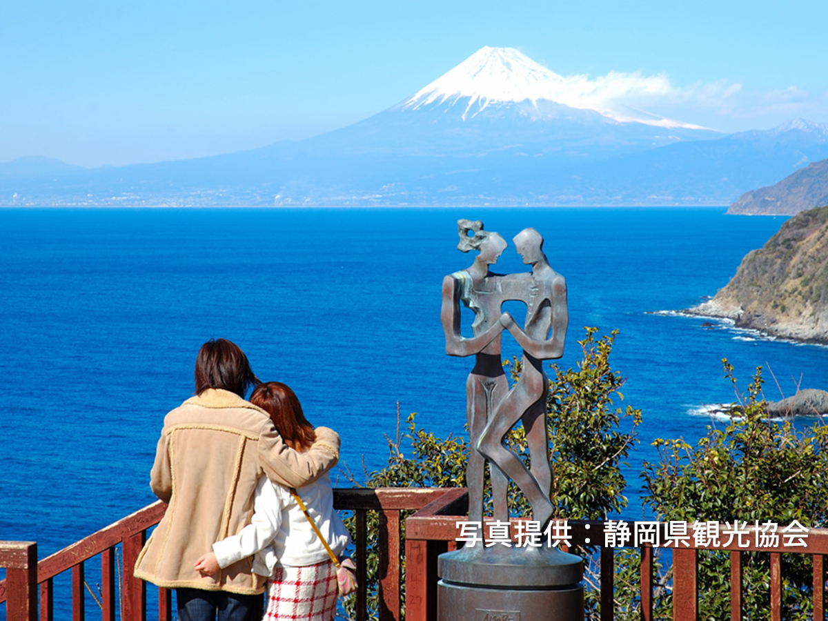 山頂からは下田市街に下田港、伊豆七島、天城連山を一望する絶景をお楽しみいただける縁結びのパワースポット。