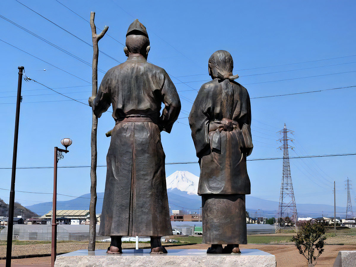 流刑となった源頼朝が20年間過ごした地。 当時この場所は狩野川の中州で、蛭の多い湿地帯だった為「蛭ケ小島」と呼ばれるようになったそうです。現在は記念碑の建つ静かな公園になっています。