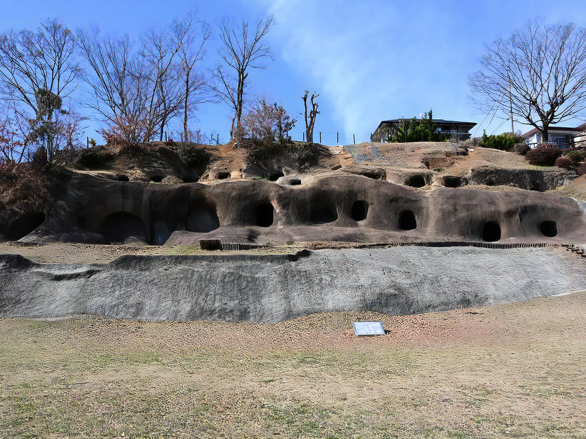 柏谷横穴群と呼ばれる横穴が30前後ある歴史散策ゾーン。7~8世紀の古墳時代のお墓だった場所。ここからは当時の土器も多数出土しています。