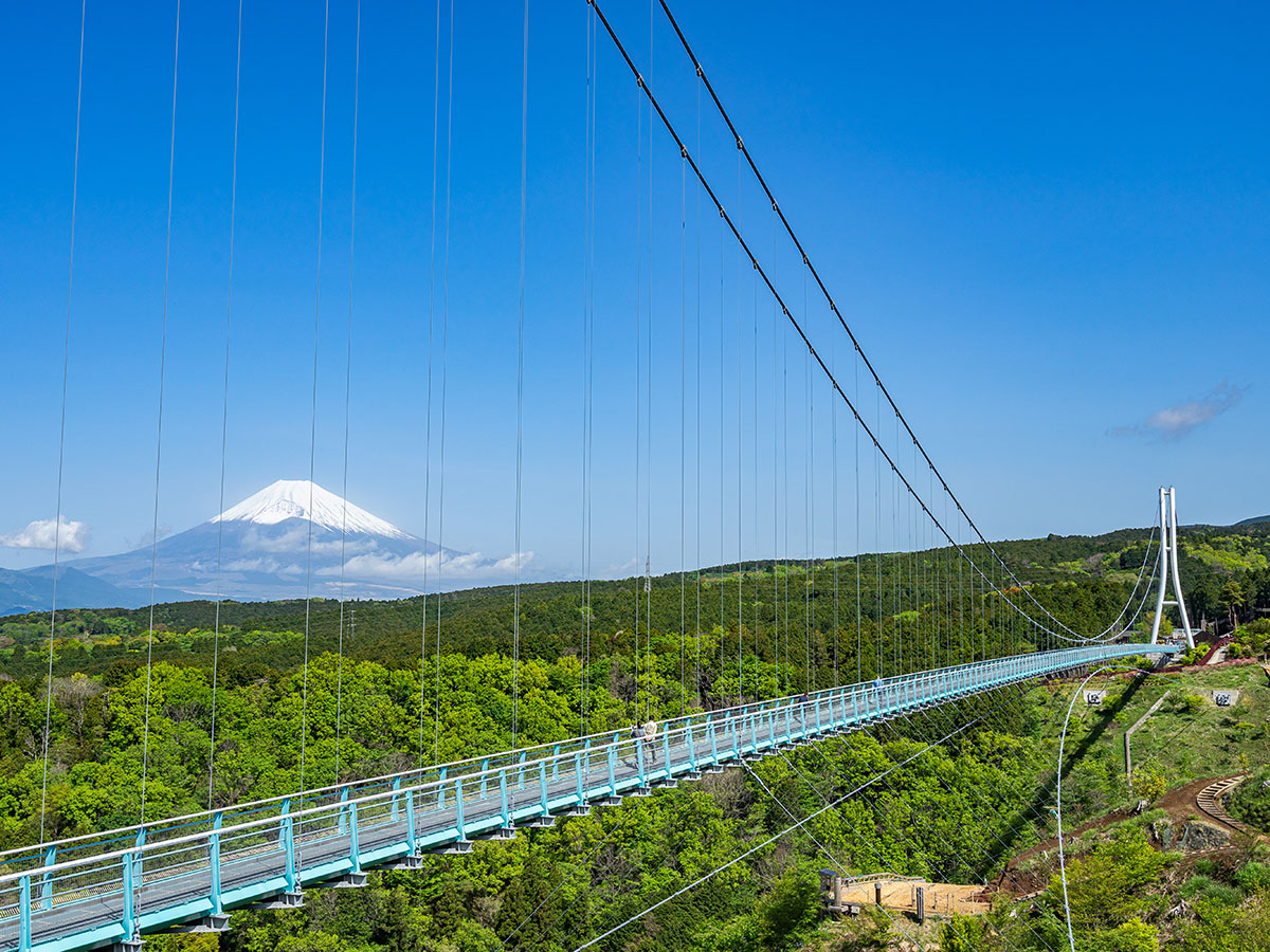 平成27年12月14日にOPENした、日本最長400mの日本一の大吊橋です。橋の上からは、晴れた日には雄大な富士山を眺める事ができます。