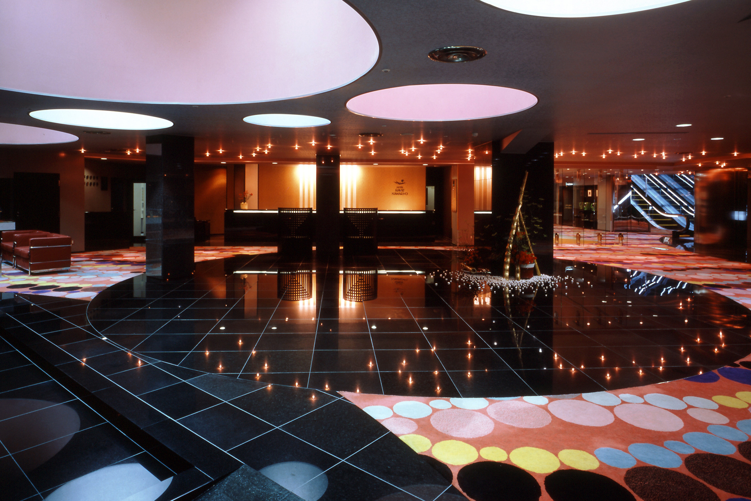 黒御影石と真円の広がりが宇宙空間を連想する広がりを持つロビーラウンジは大型リゾートホテルとして、お客様を心地よくお出迎えいたします。