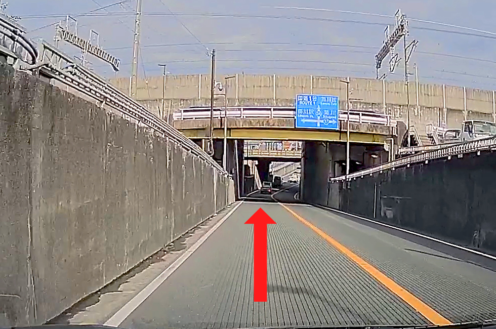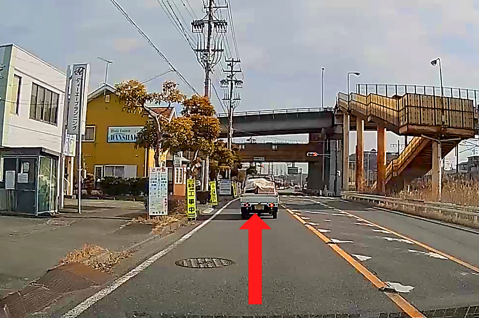 県道38号線(掛川大東線)を直進し、JR高架下をくぐる