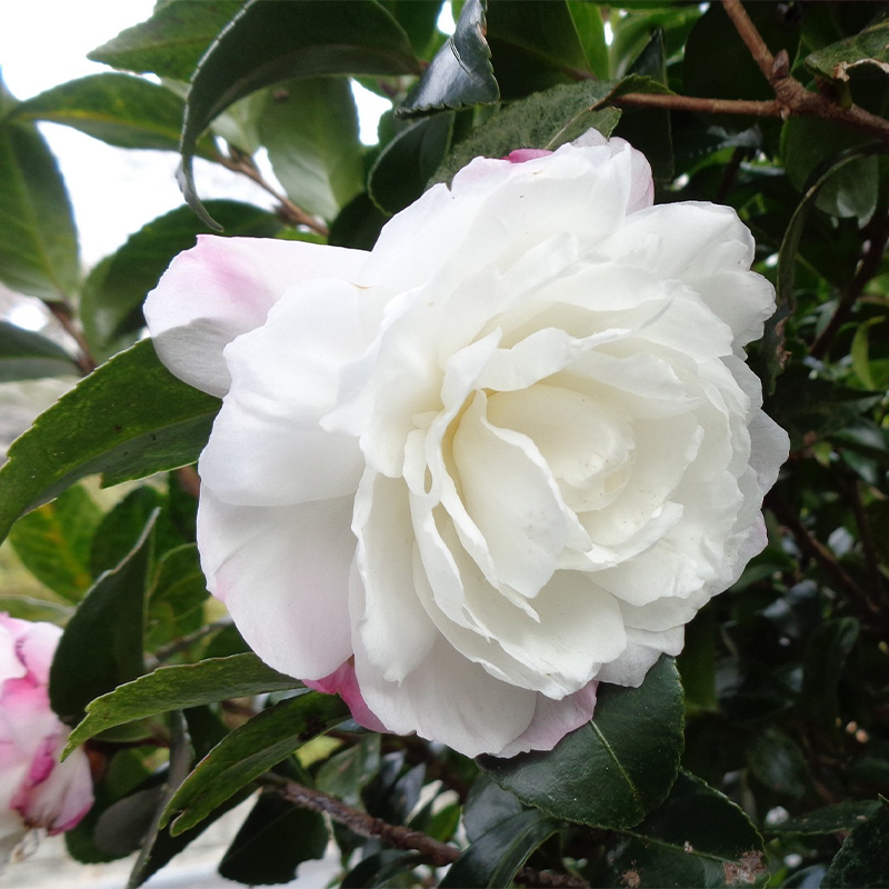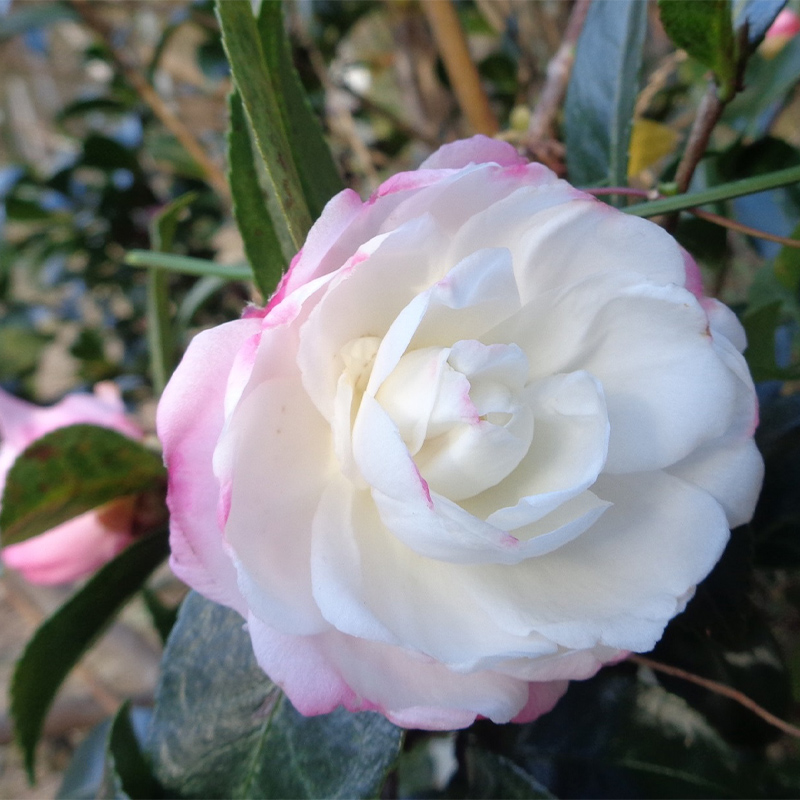 ▼ホテルノースウイング前の白い山茶花