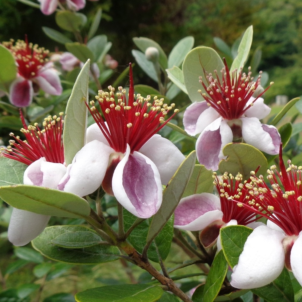 - ①フェイジョアの実が生っています。最初は固いけど熟してくると甘~い香りがして食べることができます。