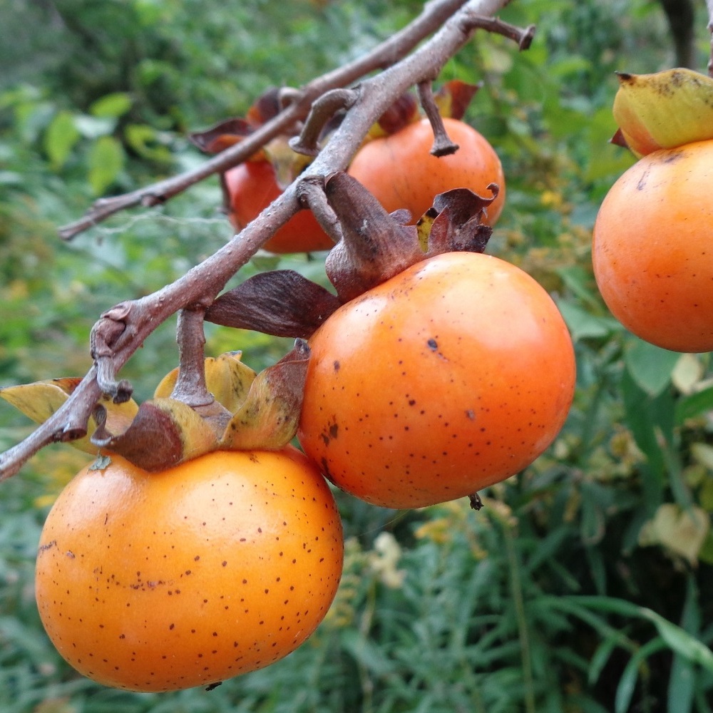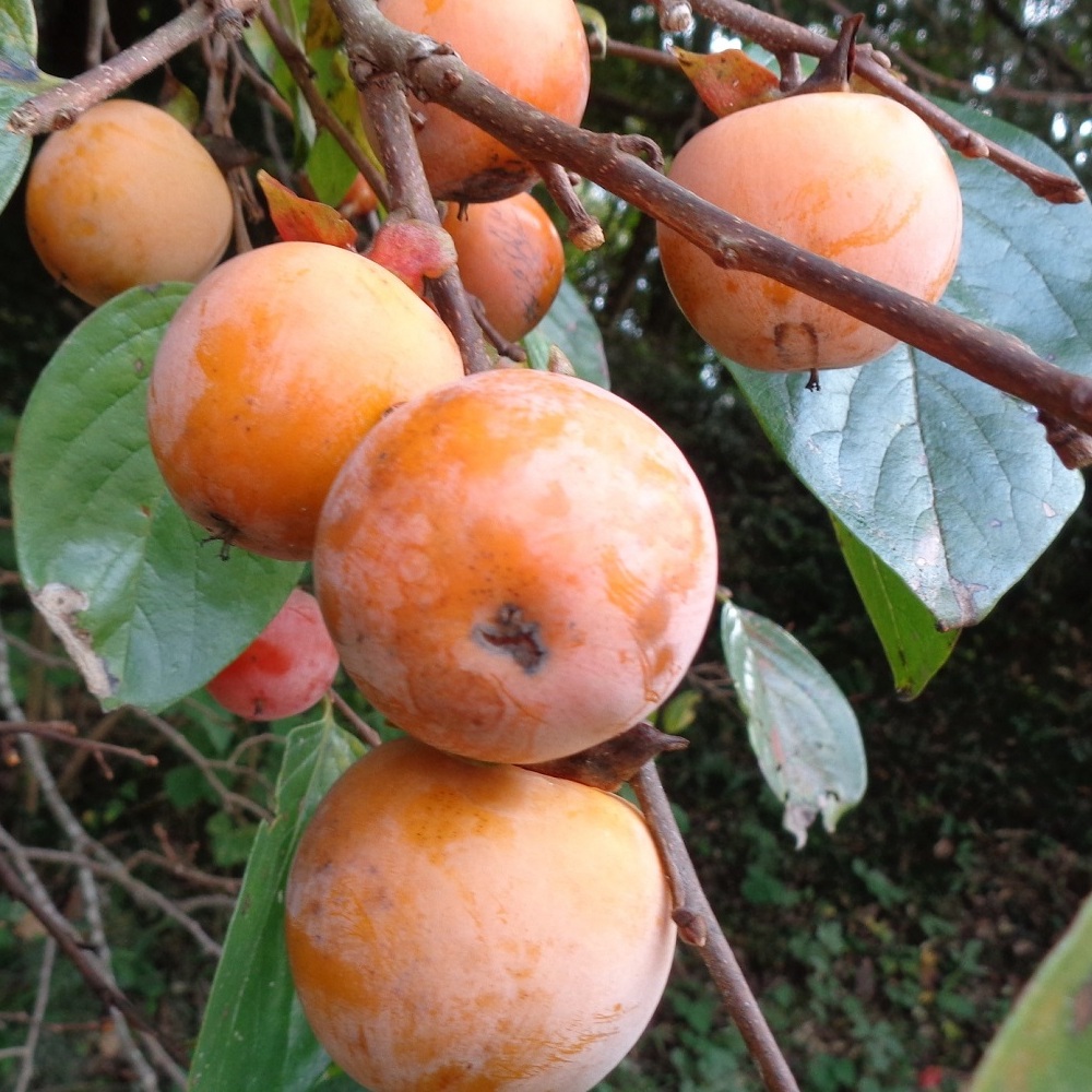 ②柿(カキ)の実が生っています。実は日本の国果は「柿」なんですよ。日本では昔から柿が愛されてきた証拠ですね。