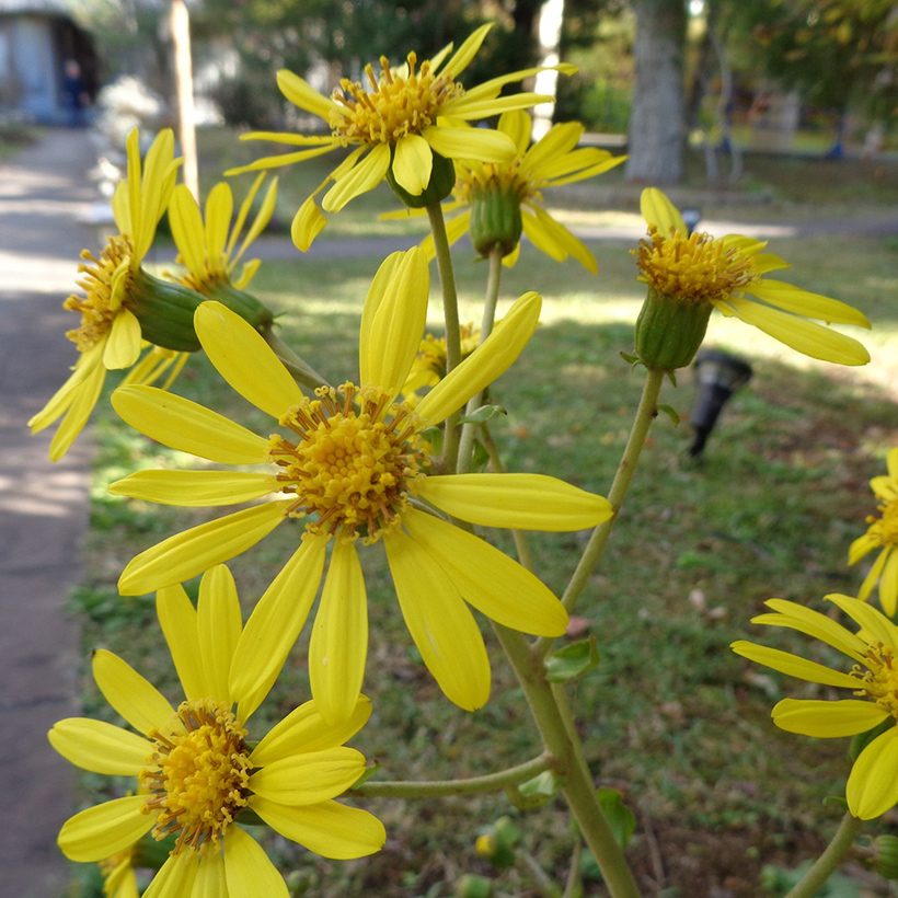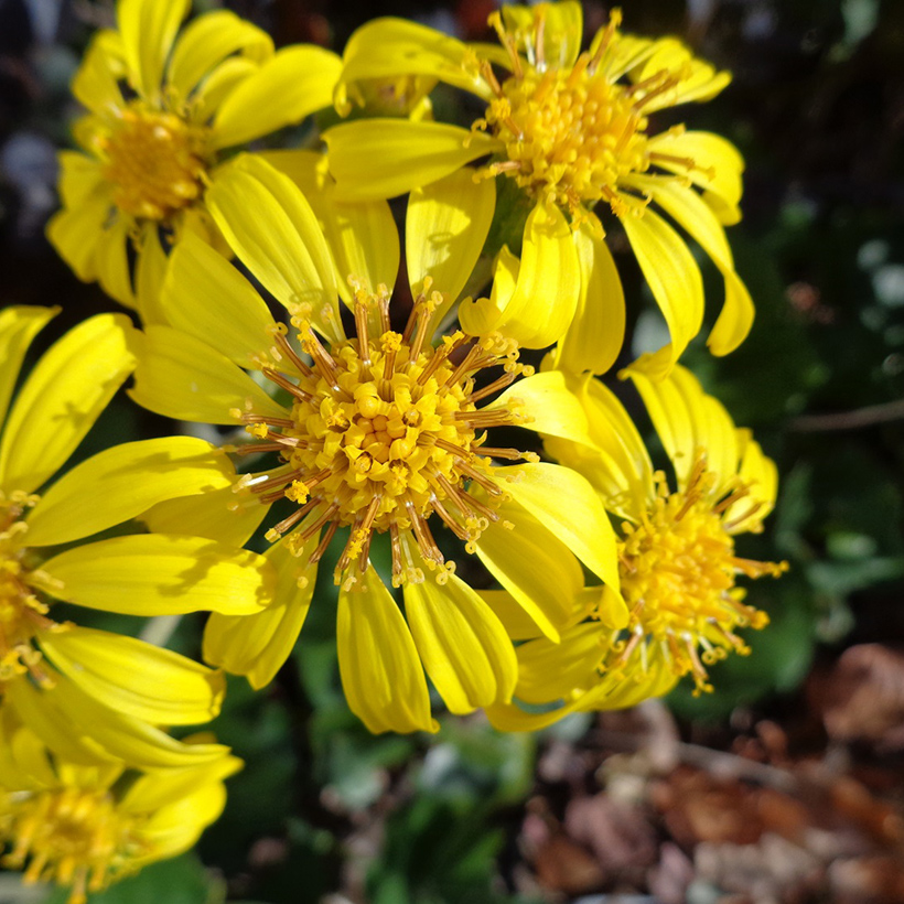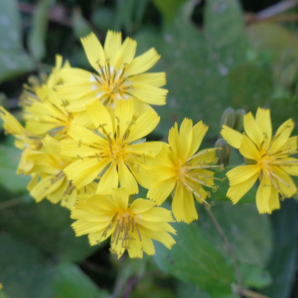 - ①薬師草(ヤクシソウ)が咲いています。菊の仲間で花の少ない時期に鮮やかな黄色の花を咲かせとても目立ちます。