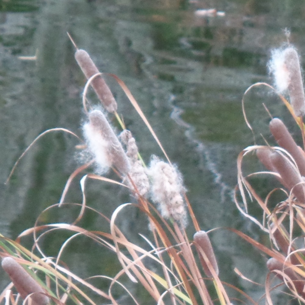 - ①蒲(ガマ)の穂がほぐれて綿毛を飛ばしています。ちょっと触っただけで穂が崩れて綿毛が飛び出し飛散されます。