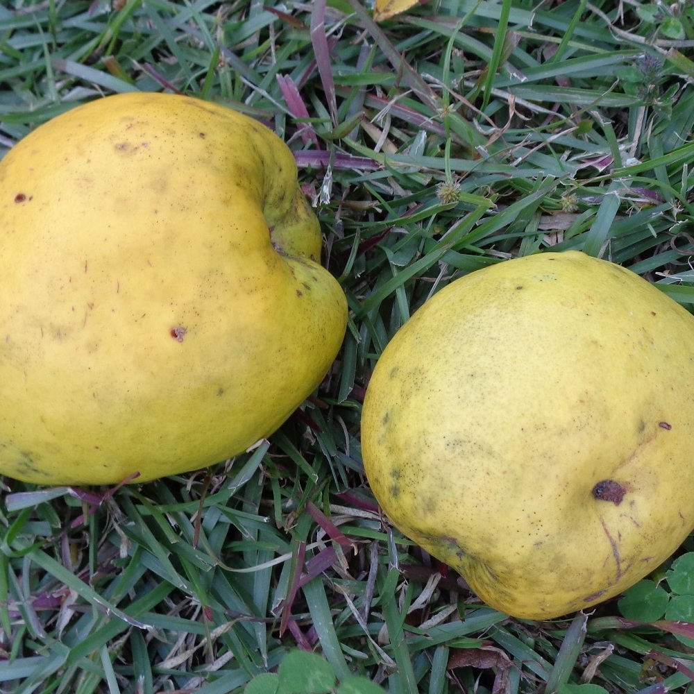 - ①花梨(カリン)の実が落ち始めました。実は香りが良くのどの薬として有名です。カリンポリフェノールという成分が含まれ、喉の炎症をしずめて風邪や喘息の咳を止めて痰を取ってくれます。