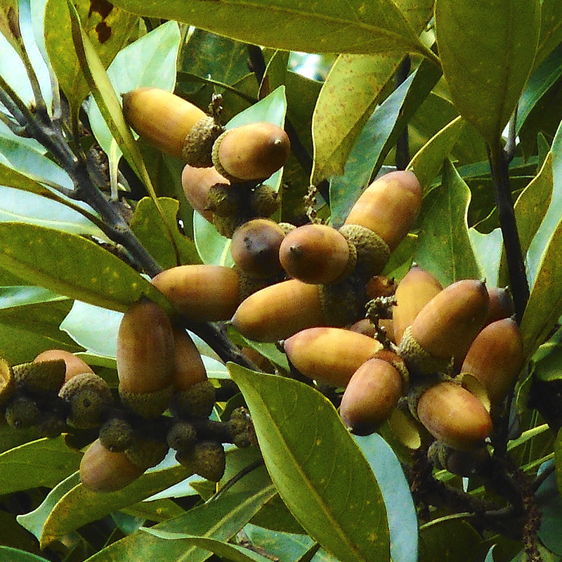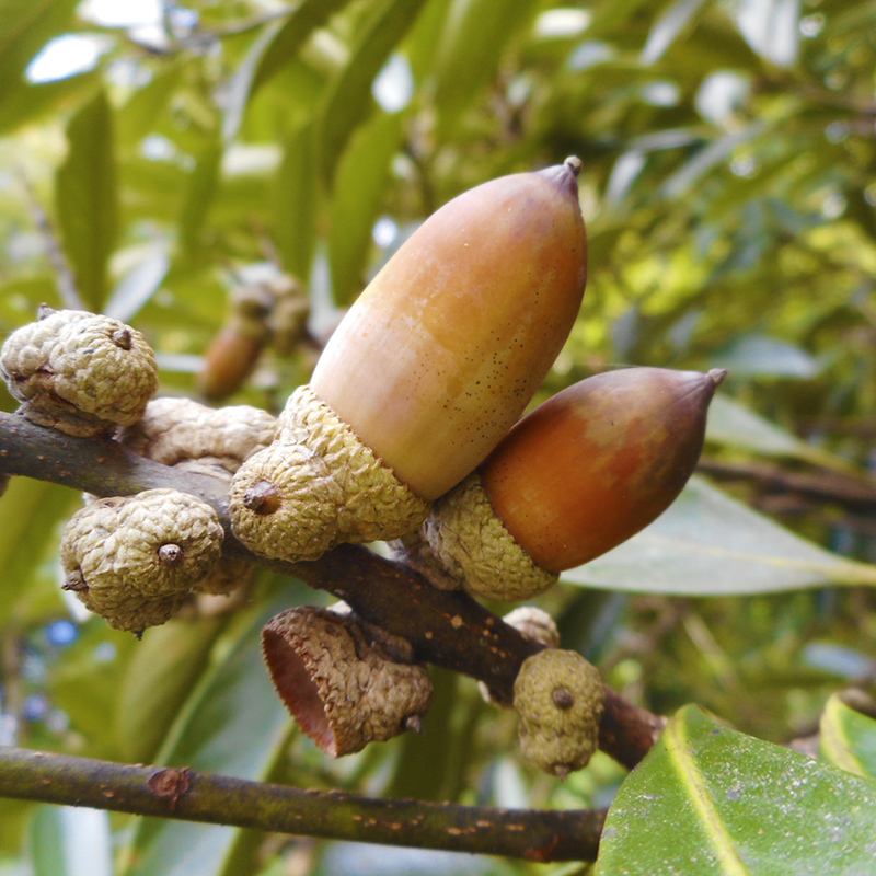 - ①全手葉椎(マテバシイ)の実が落ち始めました。3cm位の大きなドングリなので落ちる時も大きな音がします。