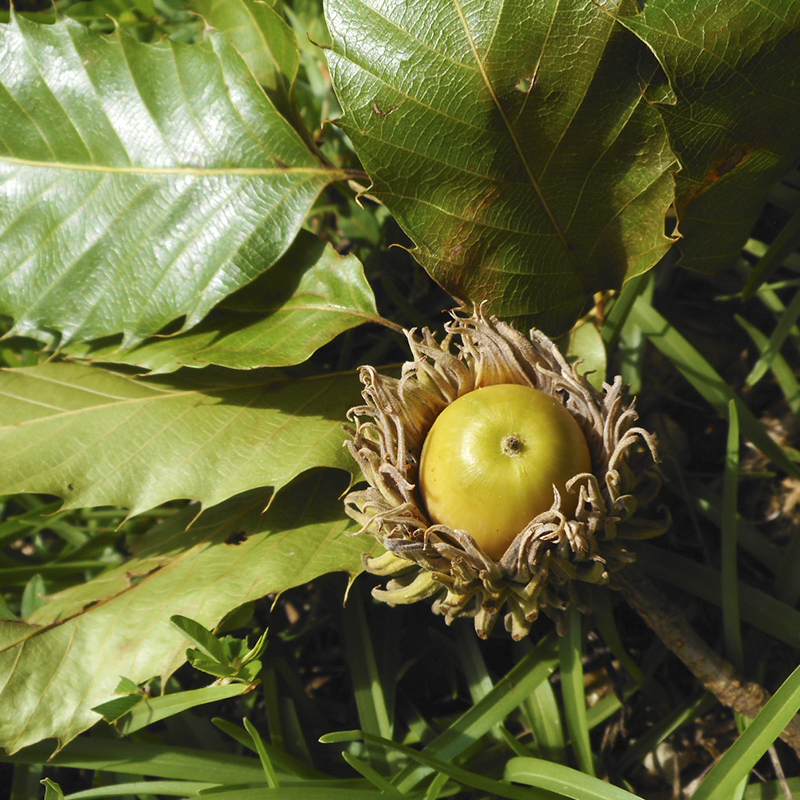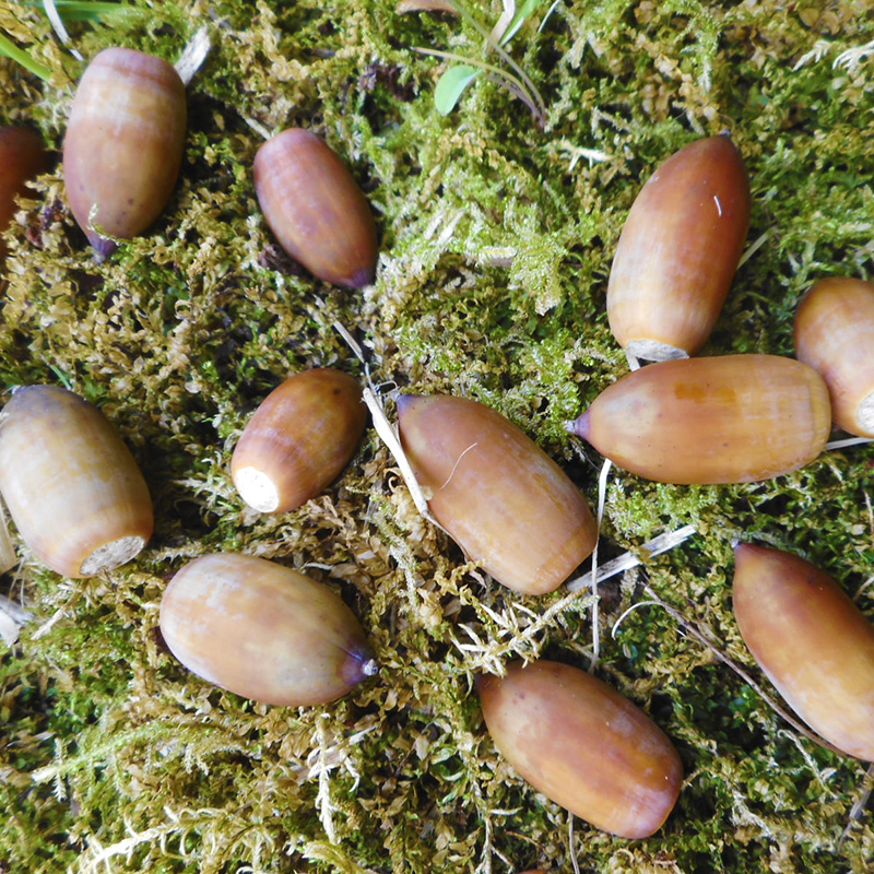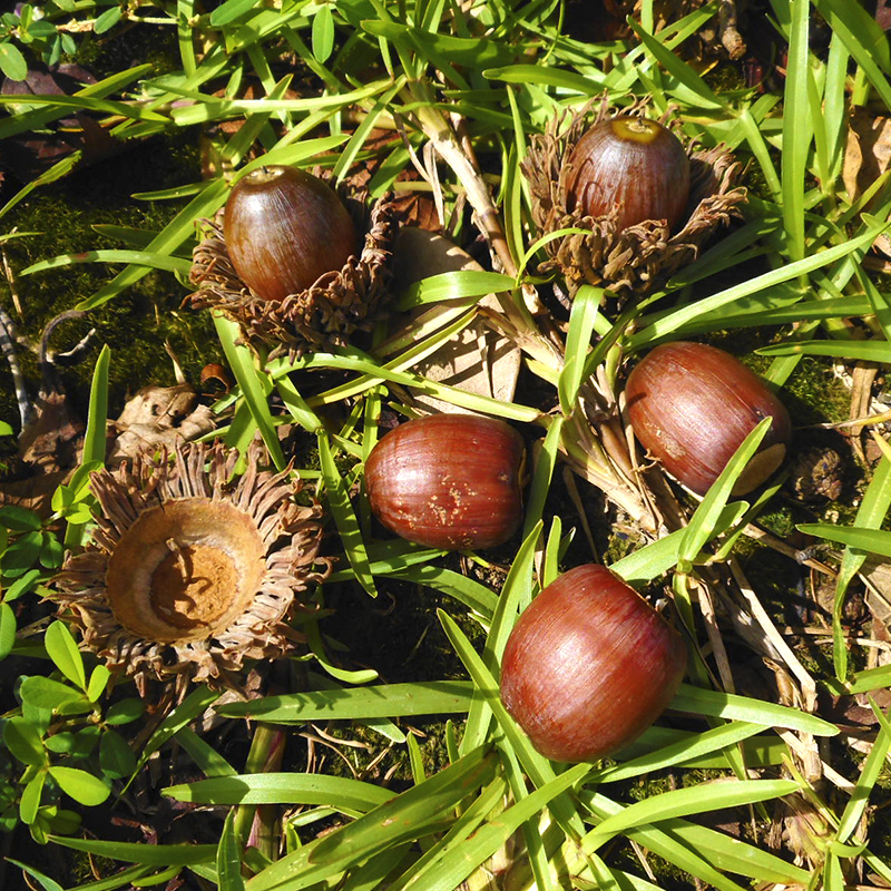 ②おもしろい形をした椚(クヌギ)の実も落ち始めました。このどんぐりはトトロにすると可愛いですよ。