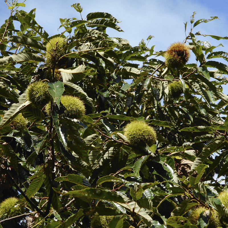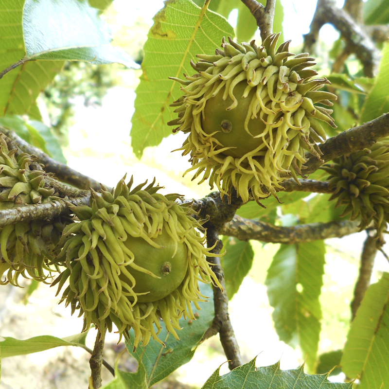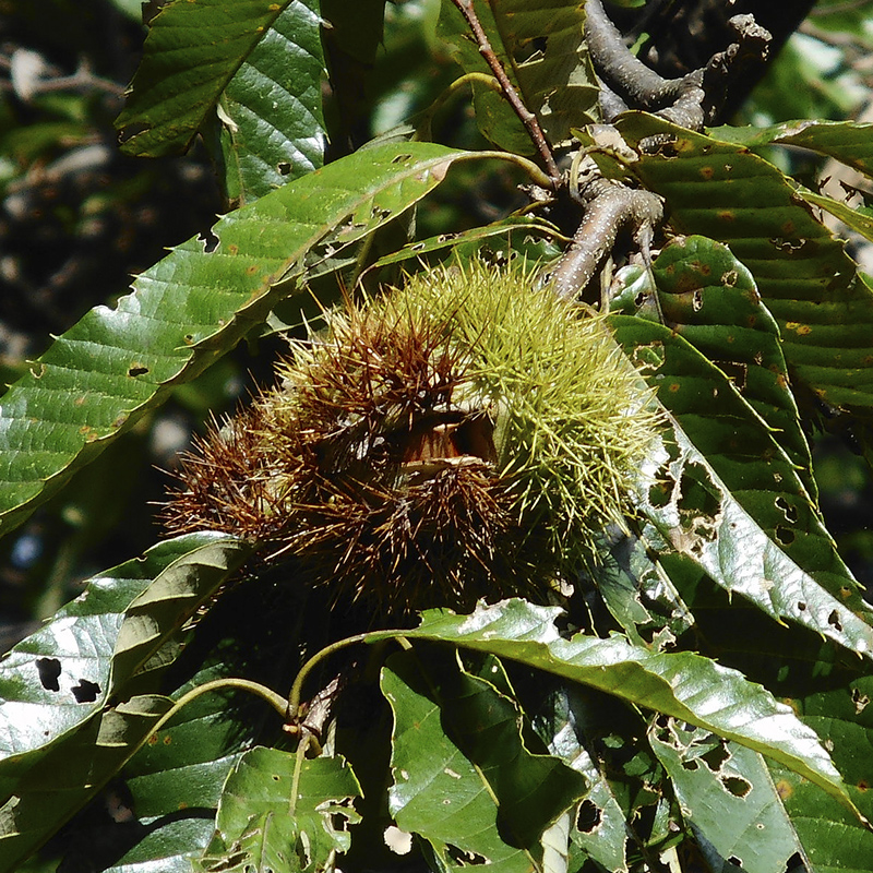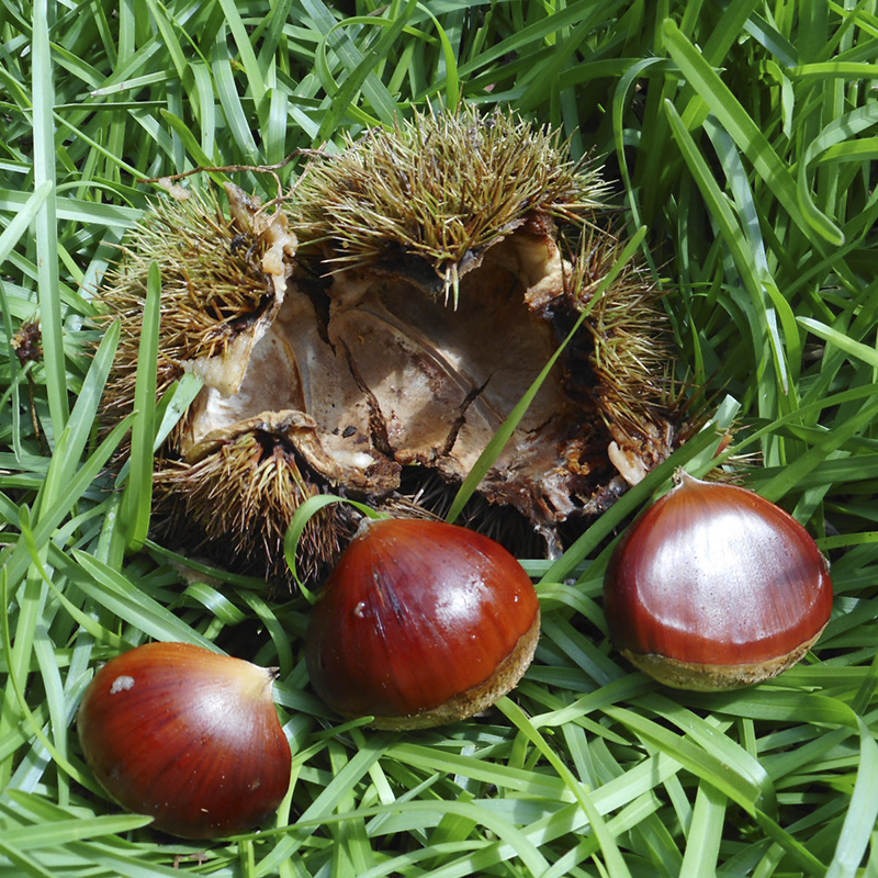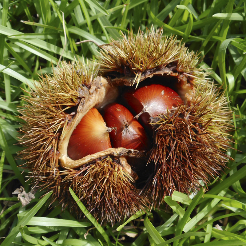 ③栗(クリ)のイガが割れ始めました。ドングリの中では一番のおいしさですね。流石秋の味覚の代表です。