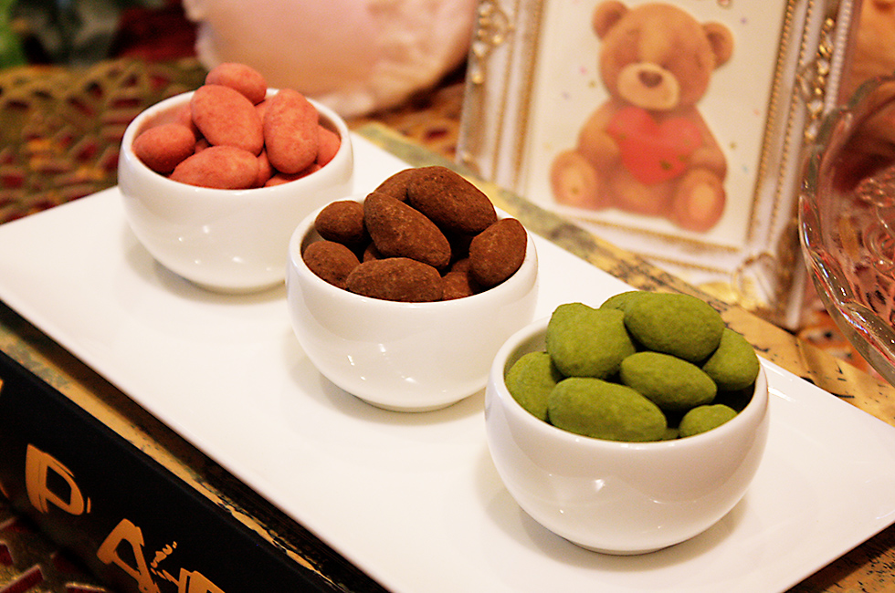 伝統的な製法でカリッと香ばしく仕上げた飴がけアーモンドにフレーバーチョコを何層にもコーティングしました。ココア・抹茶・ストロベリー3種のフレーバーがございます。