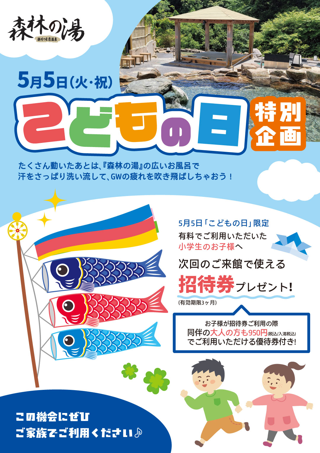 - 【温泉「森林の湯」GWこどもの日特別企画】