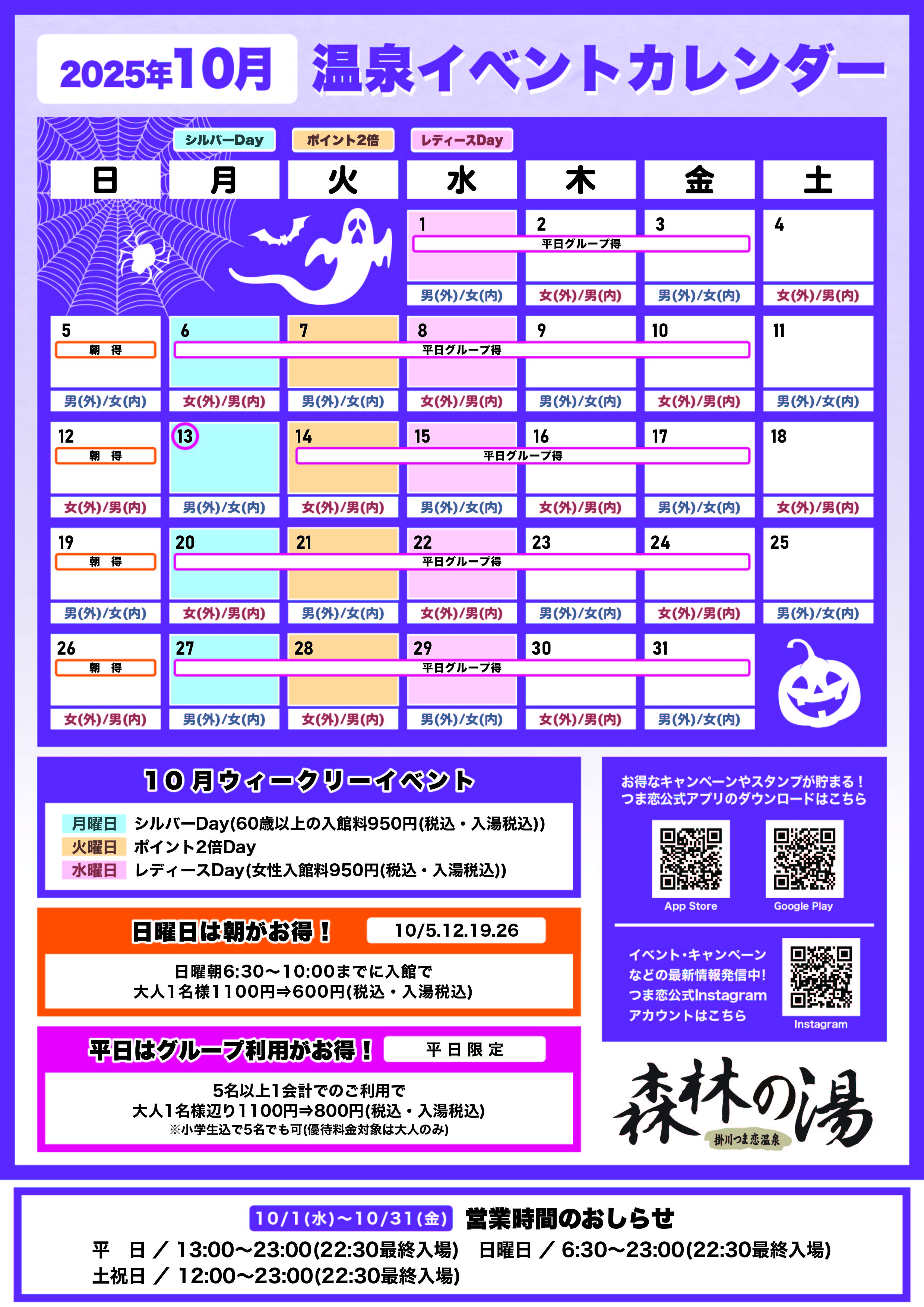 ※火曜日は森林の湯利用者に発行しています通常1ポイントのポイントカードが2倍となり15ポイントで森林の湯のご招待券1枚プレゼント! | |