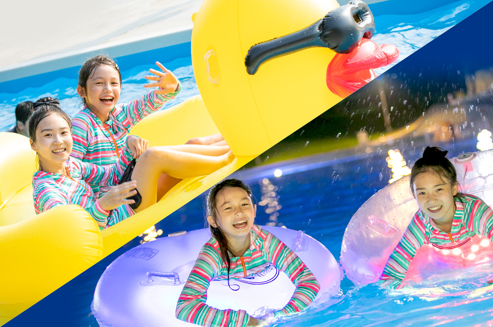 - スライダーにプール!朝から夜までたっぷり満喫!【屋外プールデイ&ナイト2日券】(2食付き)